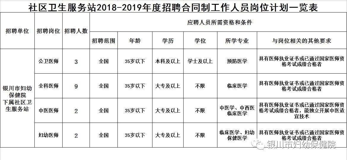 2018寧夏銀川市婦幼保健院社區(qū)衛(wèi)生服務(wù)站招聘16人公告