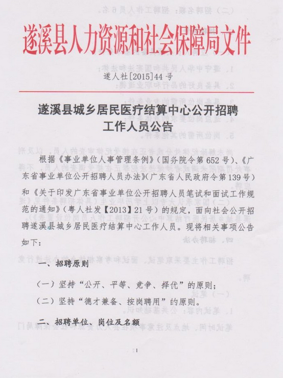 2015廣東遂溪縣城鄉居民醫療結算中心招聘公告【6人】