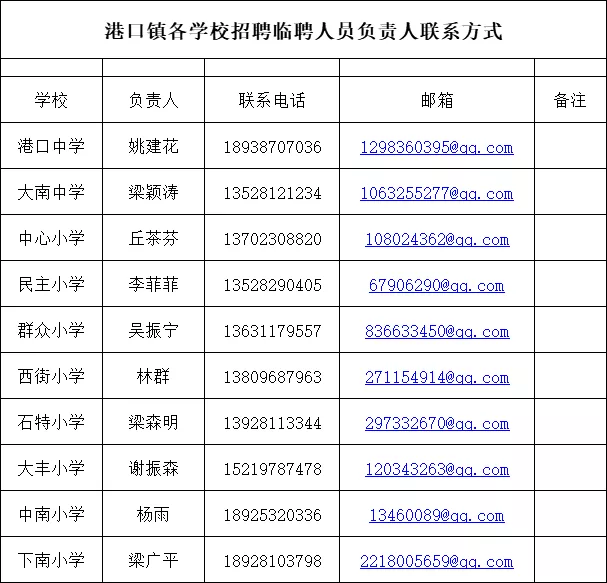 原公告:港口鎮招聘60名中小學臨聘教師!