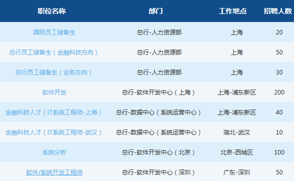 崗位名稱:總行員工儲備生(金融科技方向)