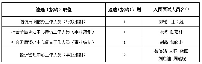 公開遴選(招聘)工作人員筆試工作已結(jié)束,根據(jù)筆試成績及遴選(招聘)筆試公告(每個職位以筆試成績從到低分,按照1:2的比例確定面試入圍人員,筆試成績相同的,均進(jìn)入面試),現(xiàn)將入圍面試人員名單及相關(guān)事項公示如下:
