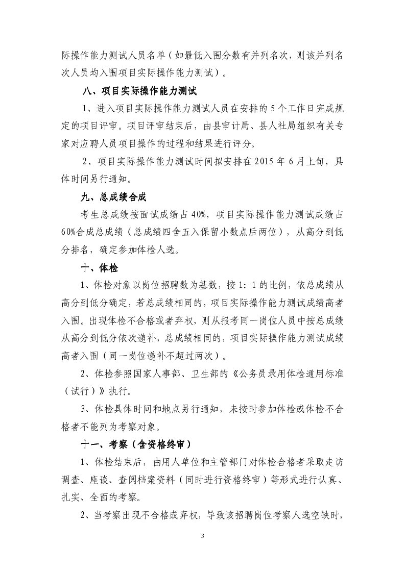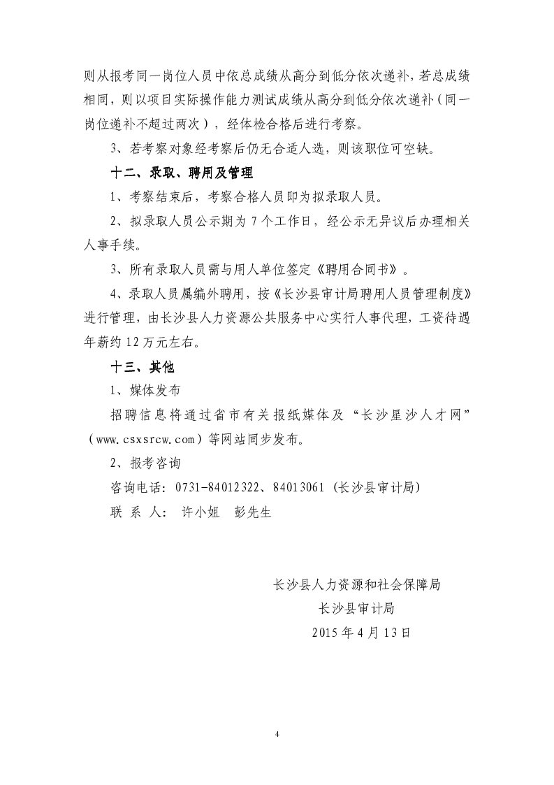 2015年4月湖南長沙縣人力資源和社會局、長沙縣審計局招聘3人公告