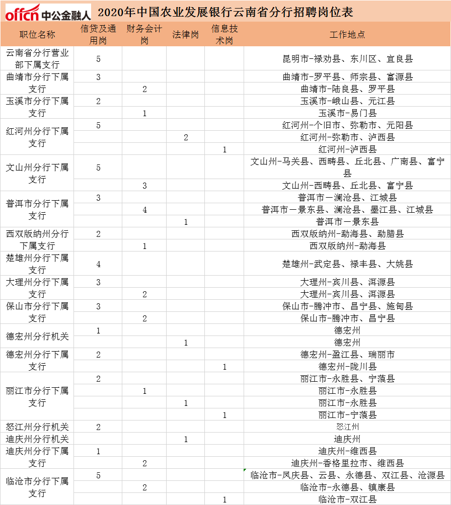 2020中國農業發展銀行云南分行校園招聘78人公告