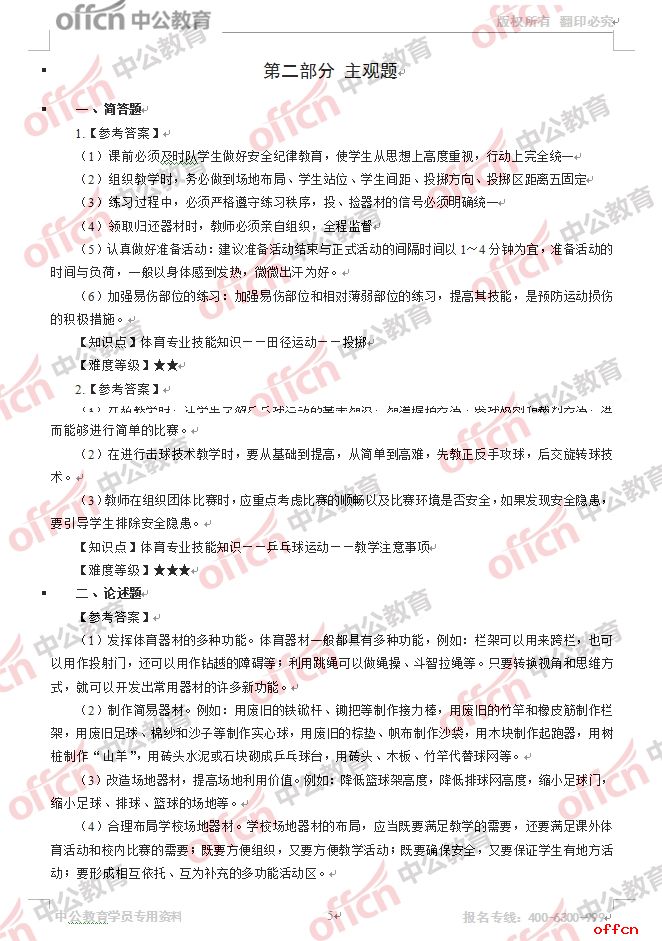 2017年江西教師招聘《中學(xué)體育》試題答案及解析