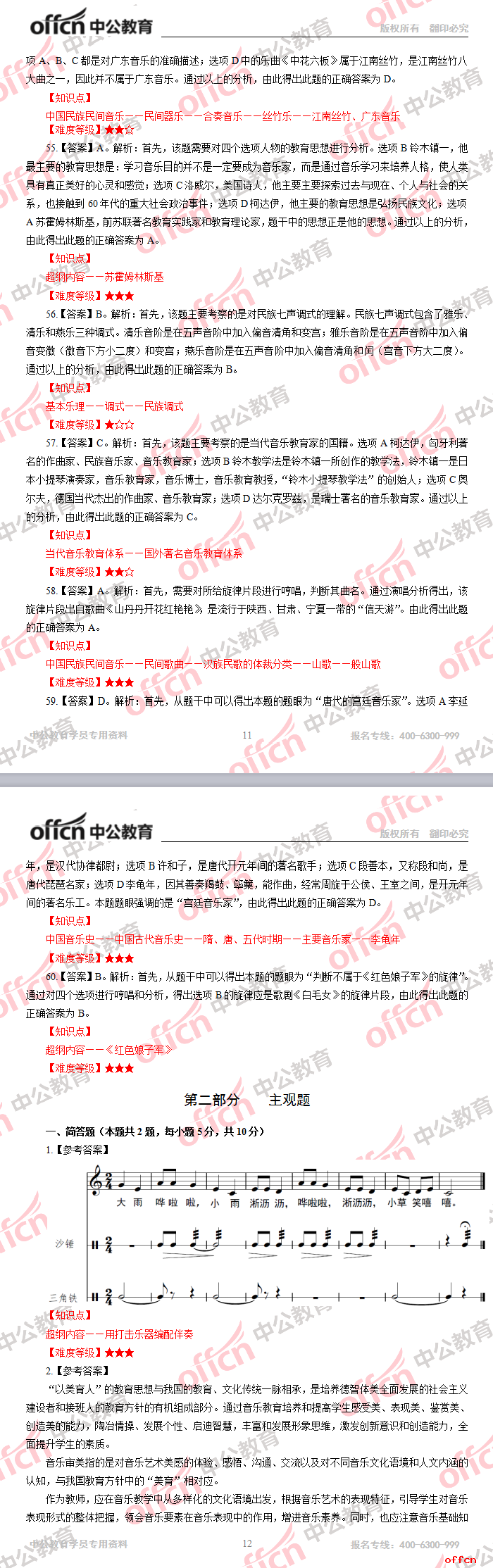 2017年江西教師招聘《小學音樂》試題答案及解析