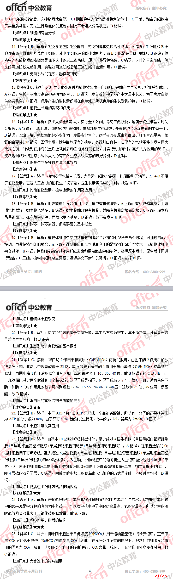 2017年江西教師招聘《高中生物》試題答案及解析