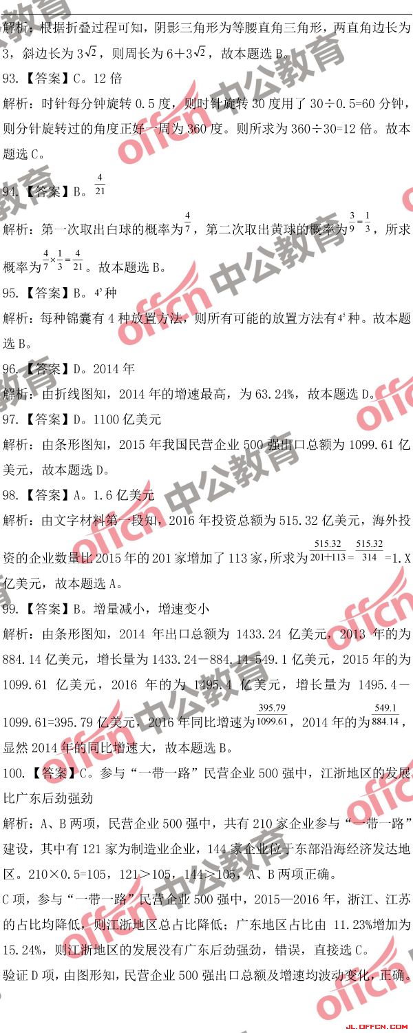 2018吉林公務員考試行測(乙)歷年參考答案及解析