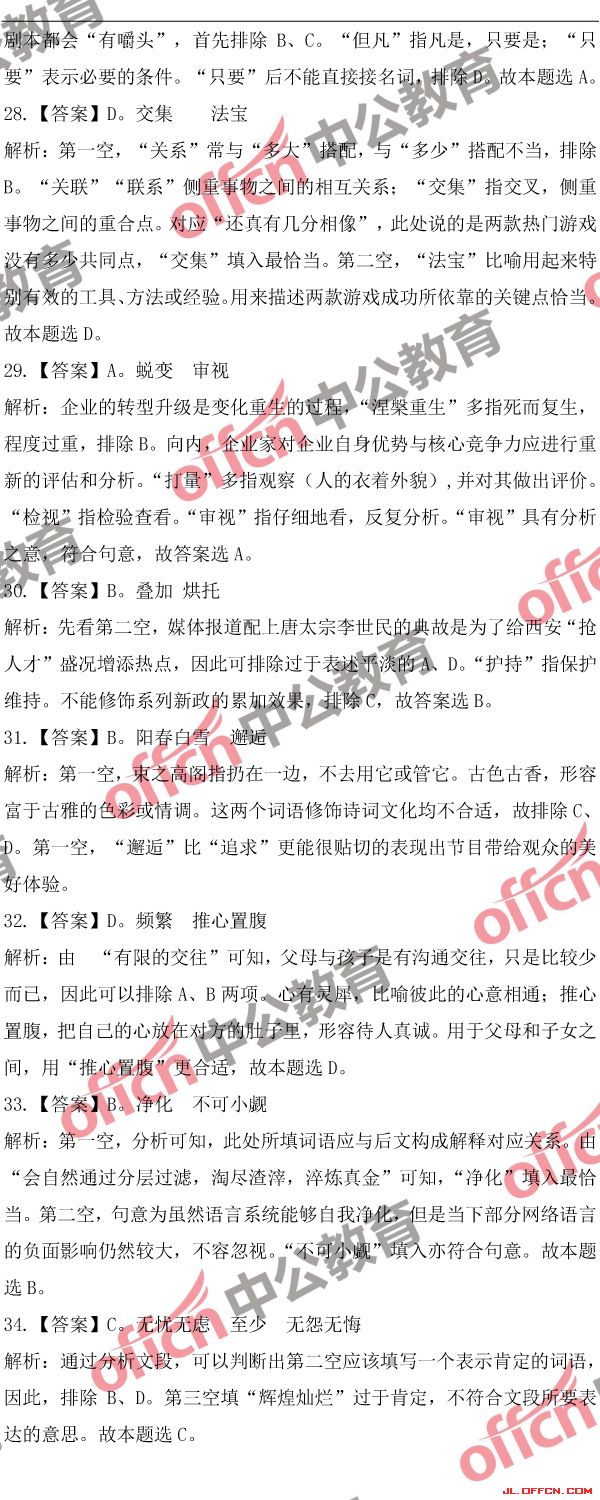 2018吉林公務員考試行測(乙)歷年參考答案及解析