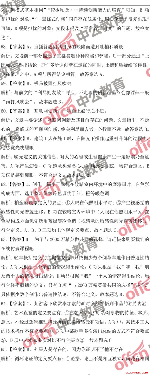 2018吉林公務(wù)員考試行測(cè)(乙)歷年參考答案及解析(9)[/page]