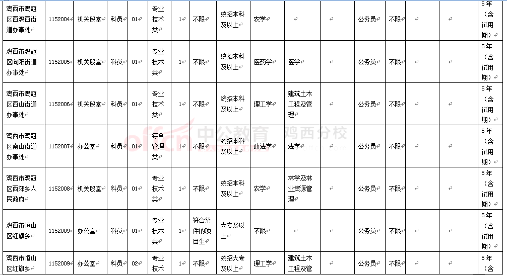 2015年黑龍江省艱苦邊遠地區公務員考試招錄雞西地區職位表