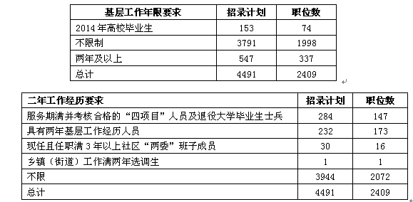 從以上兩個表可以看出,今年湖北省招錄公務(wù)員對于基層工作經(jīng)歷的要求更加細(xì)化,詳細(xì)地將招錄人群定位為服務(wù)期的四項目人員、現(xiàn)任且任職滿3年以上社區(qū)“兩委”班子成員、鄉(xiāng)鎮(zhèn)(街道)工作滿兩年選調(diào)生,這類職位屬于特殊職位,有相關(guān)經(jīng)歷的考生可為之一搏。