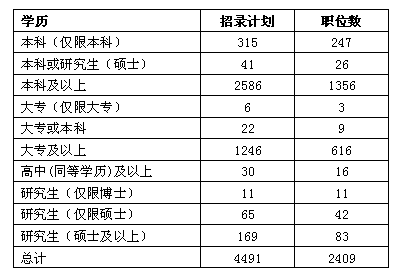 本科及%以上的學(xué)歷招錄2586人、1356個職位,占到總數(shù)的57.5%,這個比例相對于其他省份略低,學(xué)歷要求覆蓋面的擴(kuò)大將更多對喜好公職的有志之士納入到參考的人群中來。