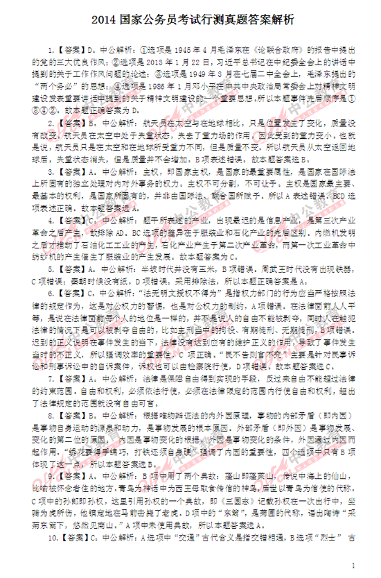 2014年國家公務員考試行測解析